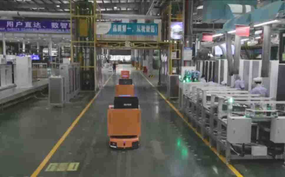 为车载冰箱物流配送打造的智能解决方案,,,包含产中物流通过潜伏举升AMR搬运至线边,,产后成品物流智能仓储,,,流程包含产中物流智能齐套入库,,,,线边安灯叫料AMR智能配送至线边,,,成品入库、、、、出库,,,,通过无人堆高车机器人,,,,智能仓储管理替代人工作业管理,,,,实现更高存储、、、更高效率、、、、更具柔性化的解决方案。。。。